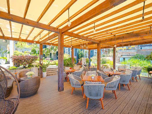 - Sân vườn thoáng mát: Khách sạn có sân vườn rộng, suối nước trong lành, không gian yên tĩnh và gần gũi với thiên nhiên, mang lại trải nghiệm thư giãn cho khách.