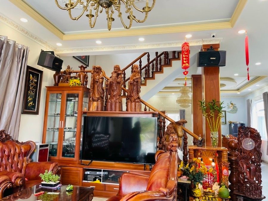 - Kết cấu: Villa được xây dựng kiên cố với 3 tầng, bao gồm 4 phòng ngủ rộng rãi, phù hợp với nhu cầu ở hoặc kinh doanh lưu trú.