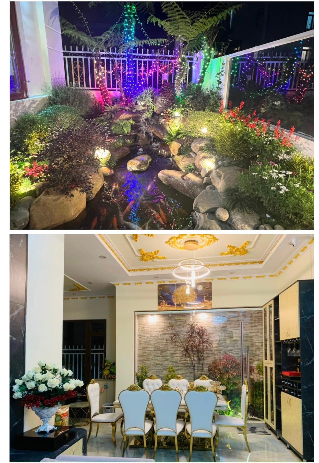 👉 2 LẦU, 5 PHÒNG NGỦ + PHÒNG KHÁCH + BẾP + SẢNH + SÂN VƯỜN + HỒ CÁ COI + 5 WC + SÂN ĐỂ XE OTO